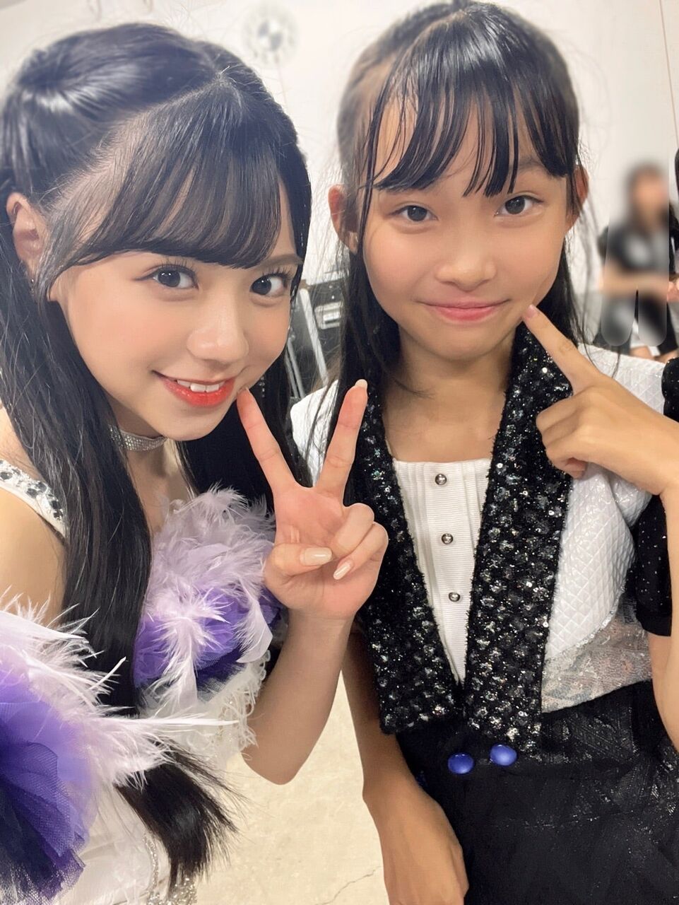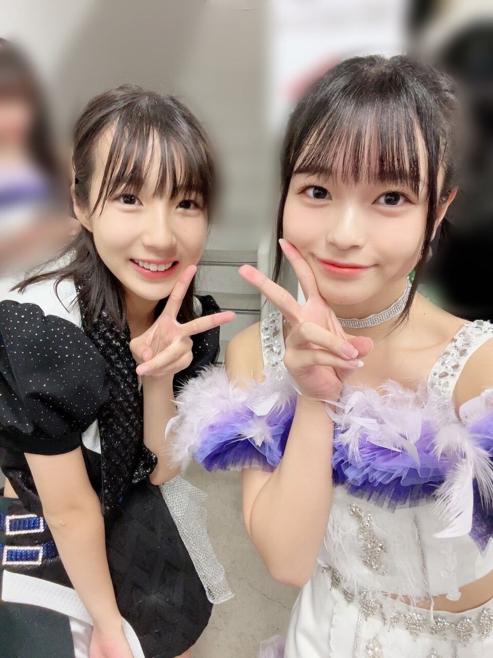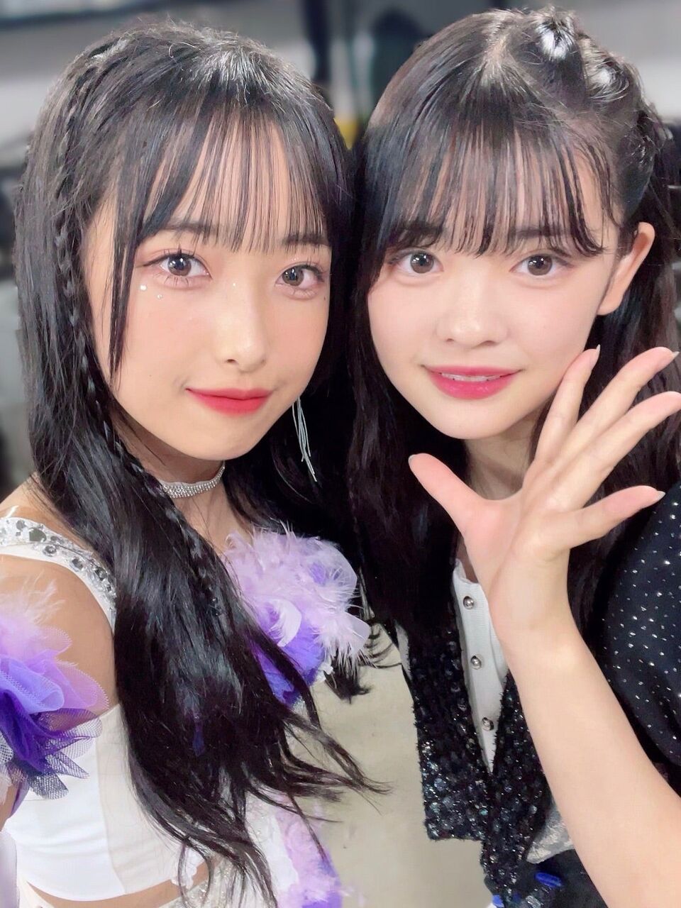 今日はね、上村麗菜ちゃんとお写真を📸れなちゃん、まじ可愛い😭可愛すぎてやばいです💦一緒にね目を合わせて踊るところがね何ヶ所かあるんですよ💕いいでしょ〜☁️𓈒 𓂂𓏸もうね、れなちゃんの笑顔素敵すぎるって☺️なんか、れなちゃんが笑っている所見るとめちゃくちゃ幸せな気持ちになるんですよね✨️しかも、めちゃくちゃお顔が小さくて💕本当になんか妹みたいです☁️𓈒 𓂂𓏸めちゃくちゃ嬉しかったことがあってね😮´-れなちゃんが昨日、今日とめちゃくちゃ話しかけてくれるんですよ(*˘︶˘*).。.:*♡「前髪めちゃくちゃ綺麗で憧れです!」とか「ブログよく見てます!」とかね…💕嬉しすぎで夏月姫もうあかんわ💓🙈💓なんか、こんなにダラダラと長いブログを読んでくれてるなんて📮_____💌.夏月姫、幸せすぎんか?!しかもね、今日れなちゃんの目の下に可愛いキラキラがついてて✨️付けなくてもキラキラしてるれなちゃんだけどそのキラキラでさらにキラキラしてて眩しかったですね🤩明日もれなちゃんと目を合わせてパフォーマンスできるなんてぇ〜💕幸せですね(*˘︶˘*).。.:*♡れなちゃん、めちゃくちゃ可愛いです❤︎𝑩 𝑰 𝑮 𝑳 𝑶 𝑽 𝑬