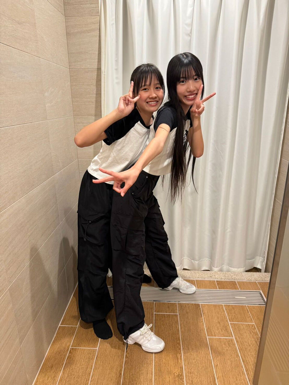 2024 年 5 月 19 日 日曜日実力診断テストのリハーサルで撮った写真です!ほんっっっとにまの(大坪茉乃)と衣装が似てたんです!!ほんとに似てます笑笑手に付けるのは全く同じのでした笑笑