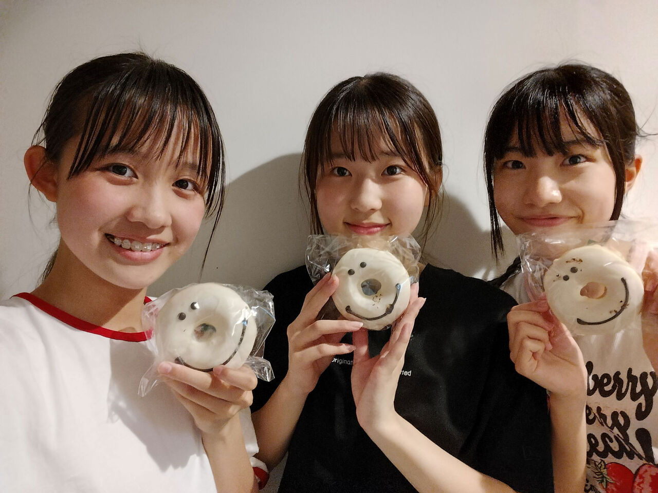 2024 年 5 月 25 日 土曜日リハーサルのおやつに食べたドーナツです!️このドーナツは元々私が食べていたのですが、((ゆりか(浅野優莉花) 美味しそ〜!!((まの(大坪茉乃) 可愛い〜!!と言っていたので、次のリハーサルの時に3人で買いに行きました❤甘くて美味しかったです(*´ч`*)