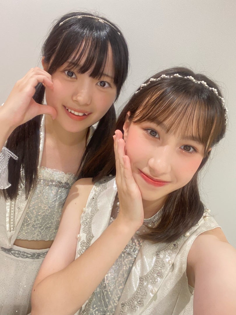 白衣装!🤍衣装につける髪飾りは初めてです。カチューシャを久しぶりにつけました!写真は小野田華凜ちゃんです。一緒に長く研修生をしてきて、一緒にこの瞬間を共有できて良かった🤗
